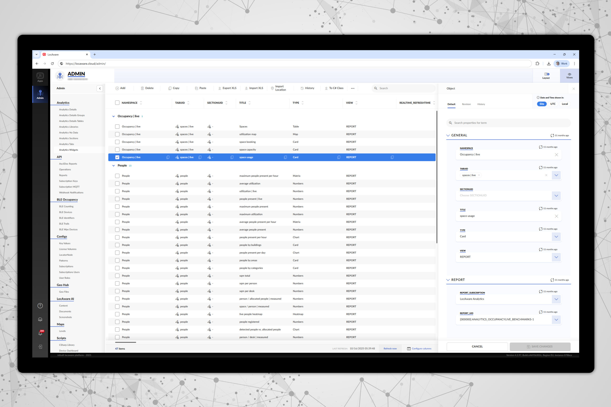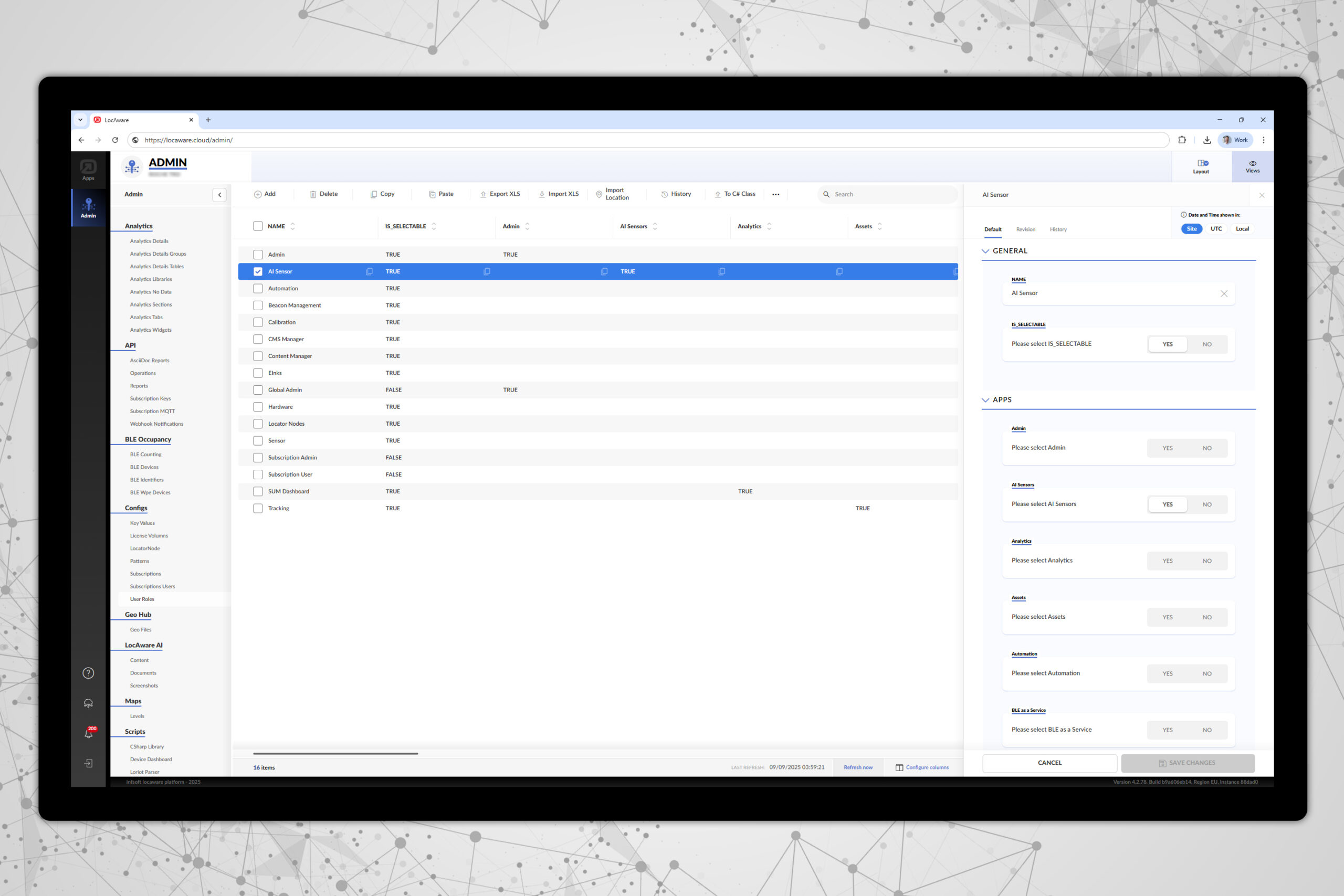Das Admin Tool ermöglicht zudem die Einbindung von Datenquellen sowie die Konfiguration von BLE-Heatmaps. Über Parameter lassen sich beispielsweise Dichteverläufe oder Visualisierungsebenen definieren, die in Analyseanwendungen genutzt werden.