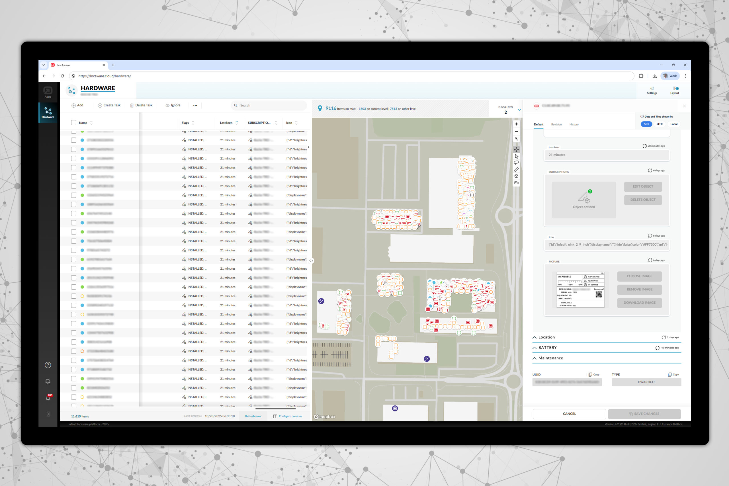 Alle Hardwareeinträge werden automatisch mit anderen Tools der infsoft LocAware platform® synchronisiert. So stehen relevante Informationen wie etwa Batteriestatus, Signalverfügbarkeit oder Standortbezug systemübergreifend zur Verfügung.