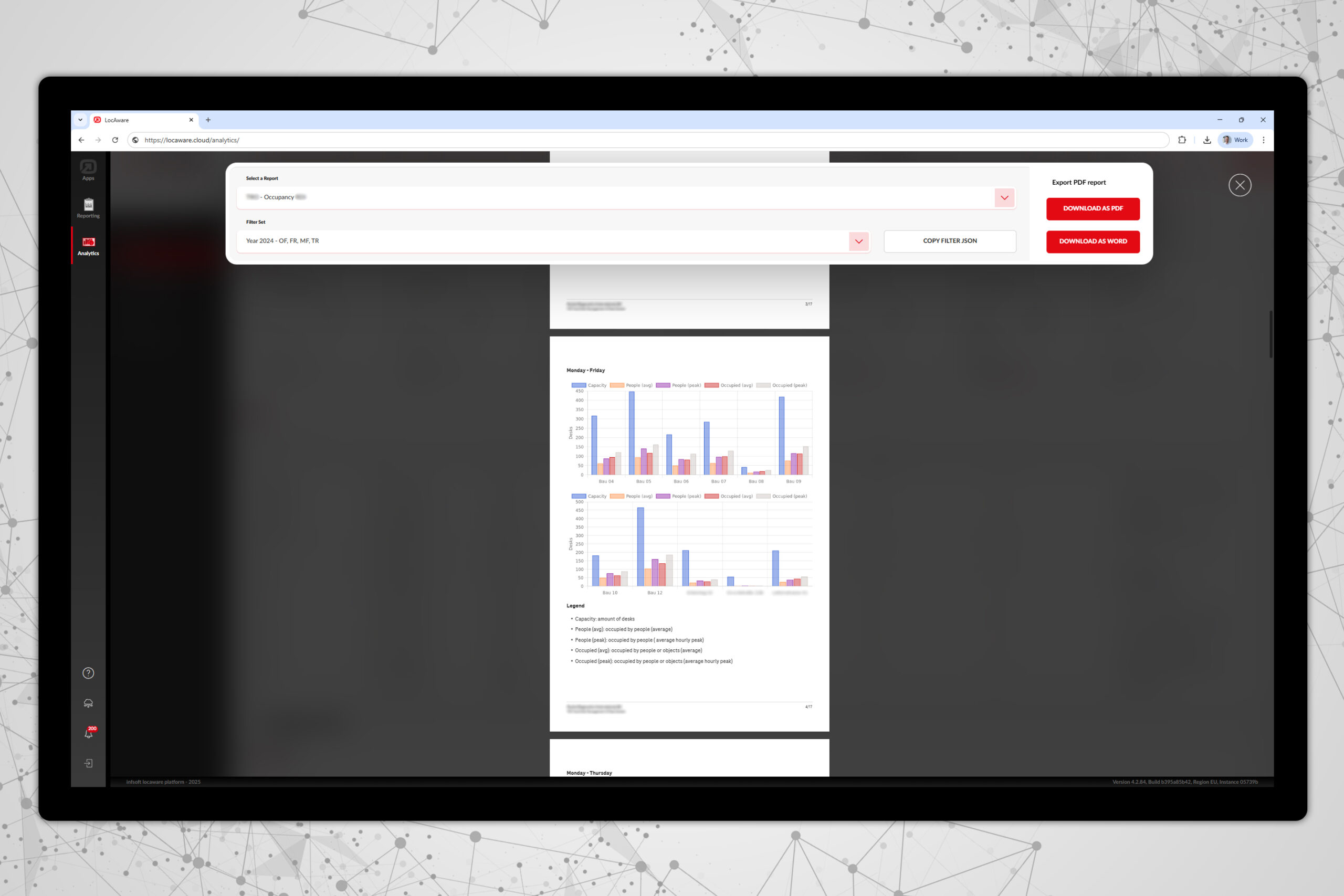 Das Tool infsoft Reporting bietet umfassenden Zugriff auf alle in der infsoft LocAware platform® verfügbaren Daten und ermöglicht die Erstellung individueller Reports zur Unterstützung fundierter Entscheidungen und zur Steigerung der Transparenz. Es kombiniert Datenkonsolidierung, flexible Formatierung und automatisierte Verteilung in einem leistungsstarken Reporting-Werkzeug.