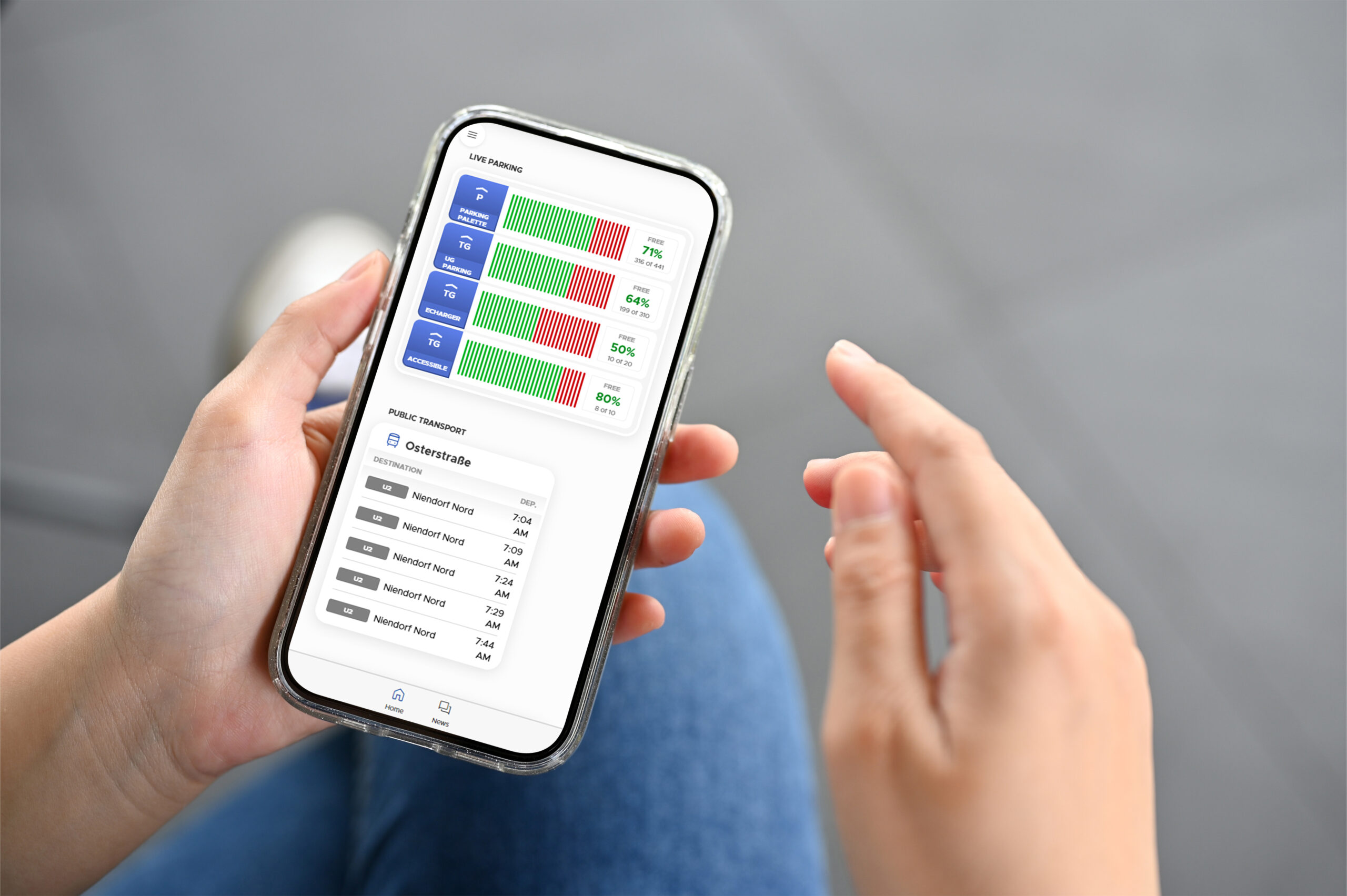 - Live Parking (Echtzeitinformationen über Parkplatzsensoren und Schrankensystem)