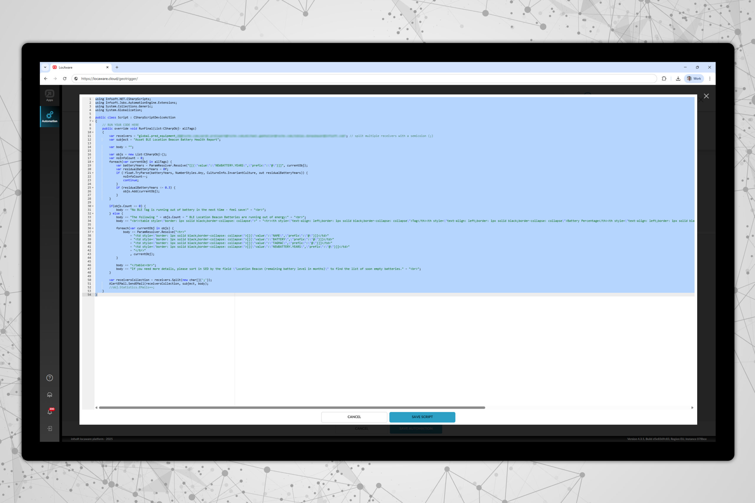 infsoft Automation is tightly integrated with infsoft Analytics and infsoft Assets. Attributes, device states, or tags can serve as triggers to initiate automated workflows. This allows analytical events – such as high space utilization or abnormal room temperatures – to be directly translated into concrete actions, from alerts to process adjustments in asset management.