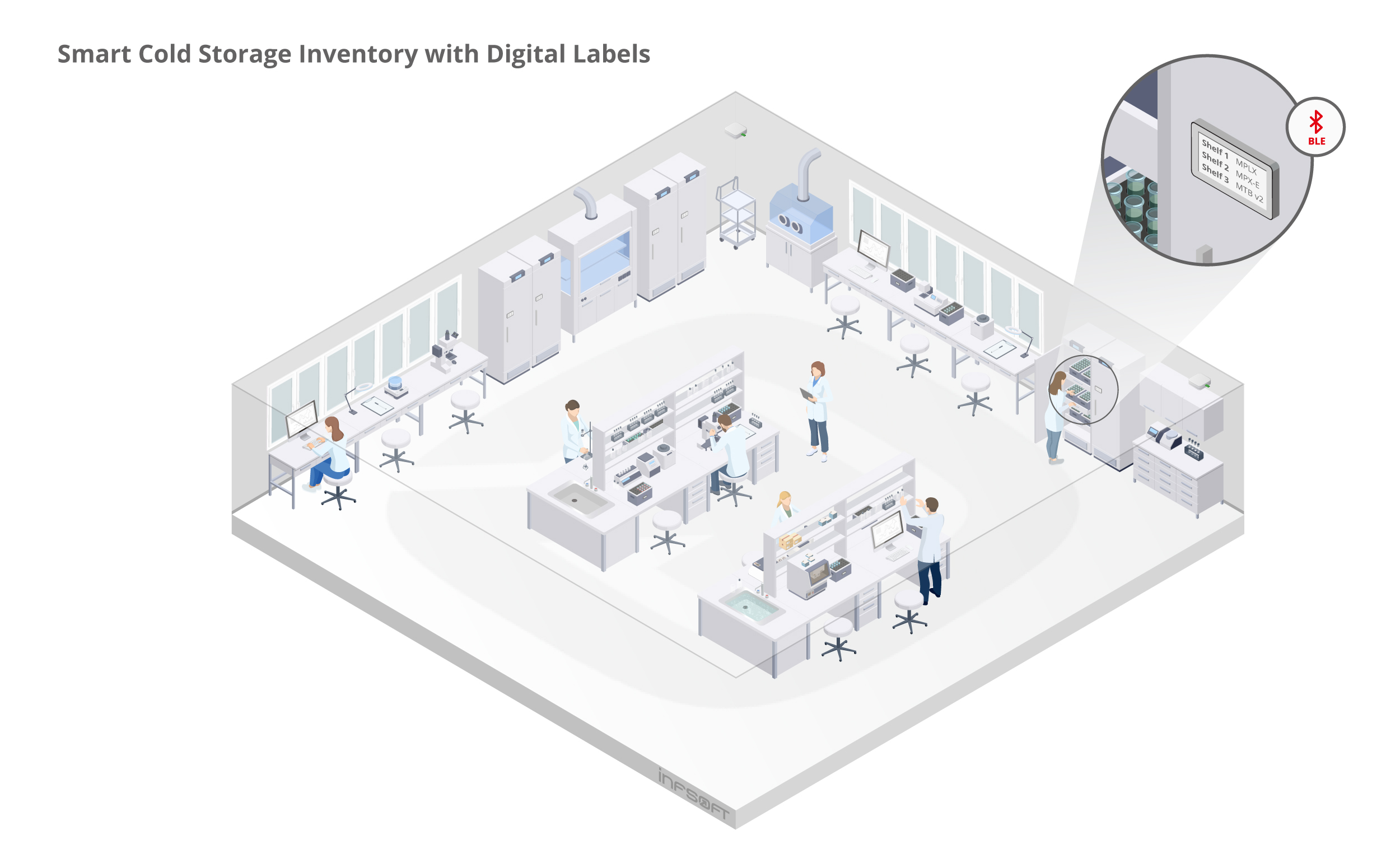 With digital labeling, the availability of freezer compartments and walk-in cold storage units can be visualized in real time. Each compartment is displayed clearly, including the assigned samples and projects, current equipment status, and the staff responsible for inventory and equipment. The BLE technology enables seamless integration with existing laboratory information and management systems, while energy-efficient E-Ink displays provide a low-maintenance, easy-to-read solution directly at the device. This approach optimizes the use of cooling capacities, streamlines laboratory workflows, minimizes cold storage opening times, and reduces temperature fluctuations. At the same time, transparency in the laboratory is increased, significantly lowering error rates in sample storage.